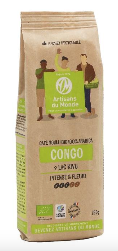 Café moulu du Congo issu de l’agriculture biologique et du commerce équitable.