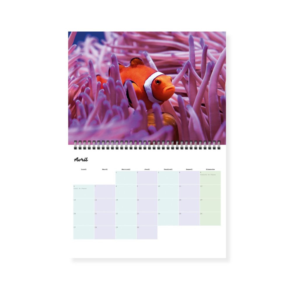 Explorez les trésors des fonds marins mois après mois : poissons colorés, méduses fascinantes, récifs coralliens éclatants et superbes paysages sous-marins. Ce calendrier est une invitation à plonger dans un univers apaisant et plein de vie, parfait pour apporter une touche de fraîcheur et d’émerveillement à votre quotidien.