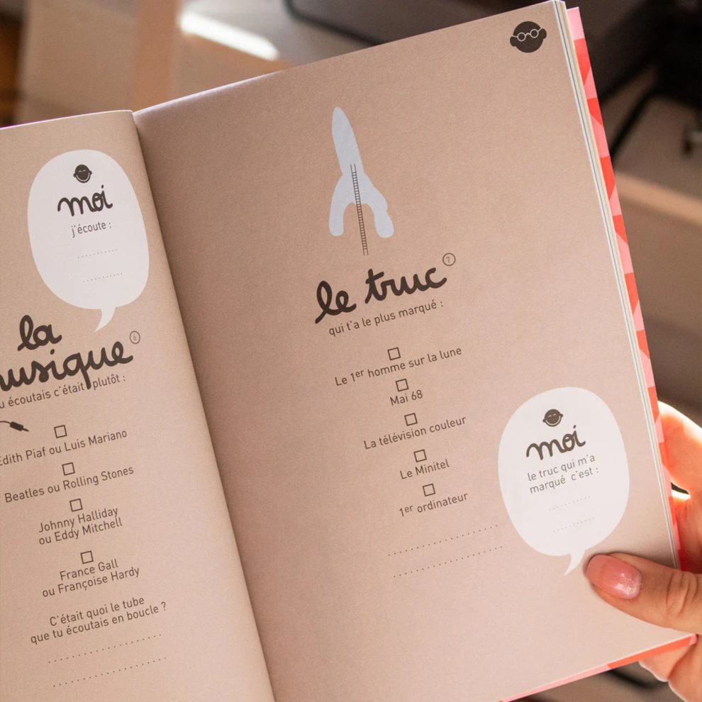 Un livre à compléter entre grands-parents et petits-enfants pour se raconter et partager un beau moment de complicité. Idéal pour se créer des souvenirs inoubliables, PAPI, MAMIE ET MOI ! est fabriqué en France, stocké dans un ESAT puis envoyé avec soin par des travailleurs en situation de handicap.
