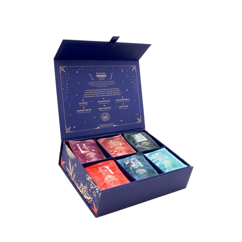 Offrez un moment magique avec le coffret de Noël « Infusions merveilleuses » : une ribambelle de saveurs douces, épicées et fruitées à savourer au coin du feu.
