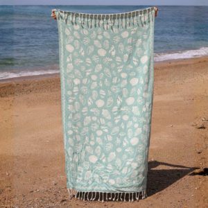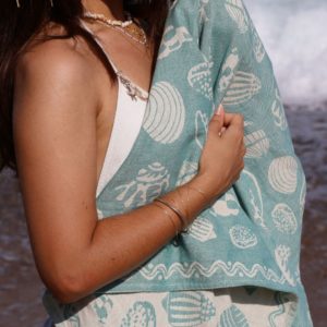 Évadez-vous avec la fouta Rivage Spiruline, confectionnée en 100% coton et sublimée par un bleu-vert spiruline délicatement teinté de jaune, rappelant les eaux chaudes de l’été et les trésors sous-marins.