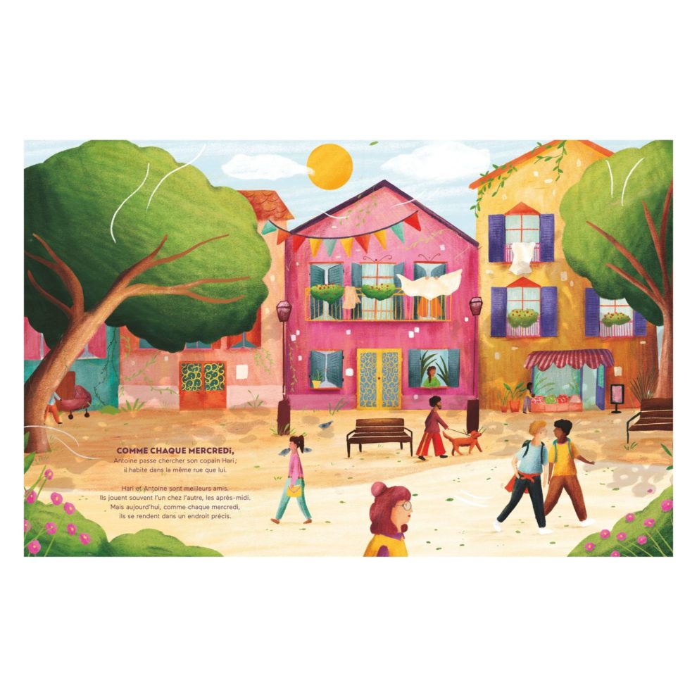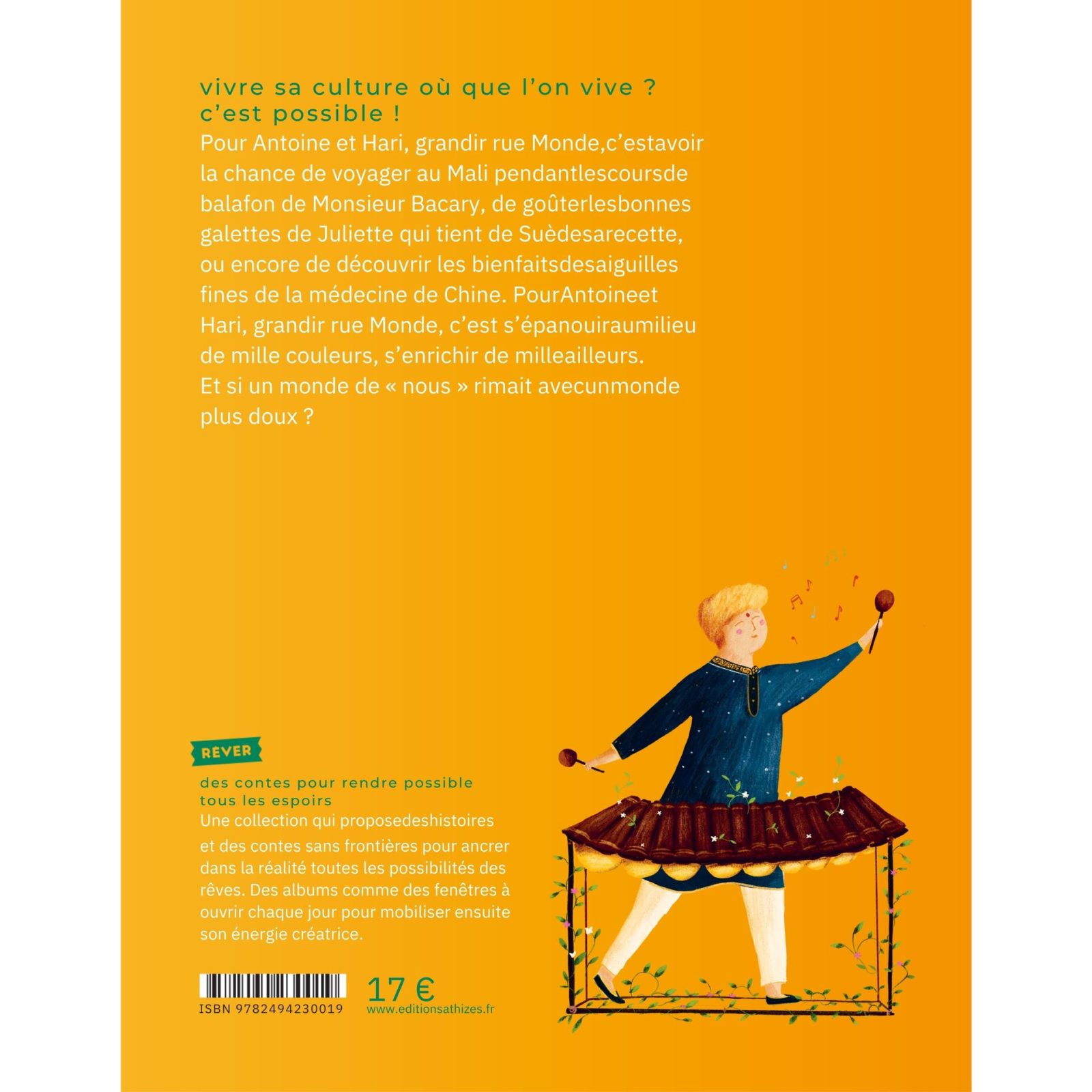 Pour Antoine et Hari, grandir rue Monde, c’est avoir la chance de voyager au Mali pendant les cours de balafon de monsieur Bacary, de goûter les bonnes galettes de Juliette qui tient de Suède sa recette, ou encore de découvrir les bienfaits des aiguilles fines de la médecine de Chine. Pour Antoine et Hari, grandir rue Monde, c’est s’épanouir au milieu de mille couleurs, s’enrichir de mille ailleurs. Et si un monde de «nous» rimait avec un monde plus doux ?