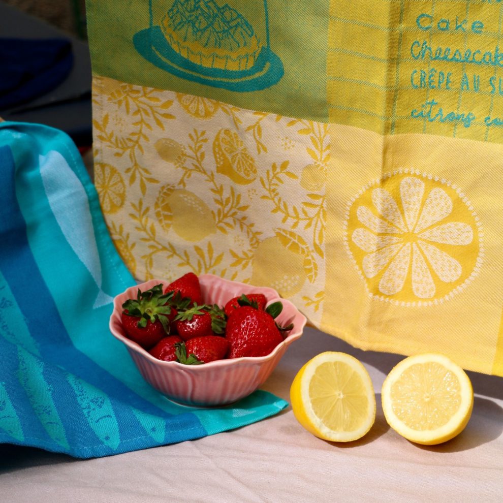Apportez de la fraîcheur et de l’originalité à votre cuisine avec ce lot de deux torchons tissés à la main à Orthez. Le modèle « Citrons verts » et « Poissons » de Tissage Moutet ajoutent une touche colorée et vitaminée à votre intérieur.
